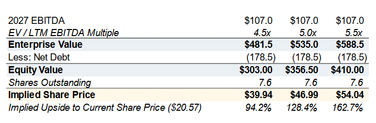 Activist value creation math — What is the case for value creation? An activist thesis could include: spin-off, separation, or sale of a business unit (especially for underperforming conglomerates), turnaround plan stemming from incompetent operators, more aggressive capital allocation, sale of entire company, etc. The investor usually (but not always) lays out their thesis and the upside math behind it.