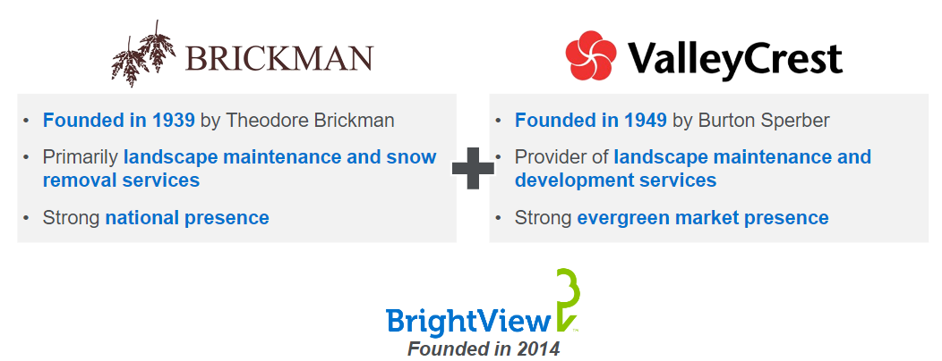 Brightview was formed in 2014 from the combination of KKR-owned Brickman Group and ValleyCrest to create the largest commercial landscaping company.