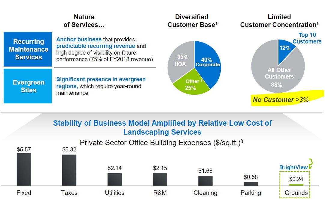 There’s no real customer concentration risk here as most of the contracted work is pretty small in nature for each customer. They’re also not entirely exposed to the future of office space / commercial real estate with a large showing from HOAs, parks, hospitals, etc.