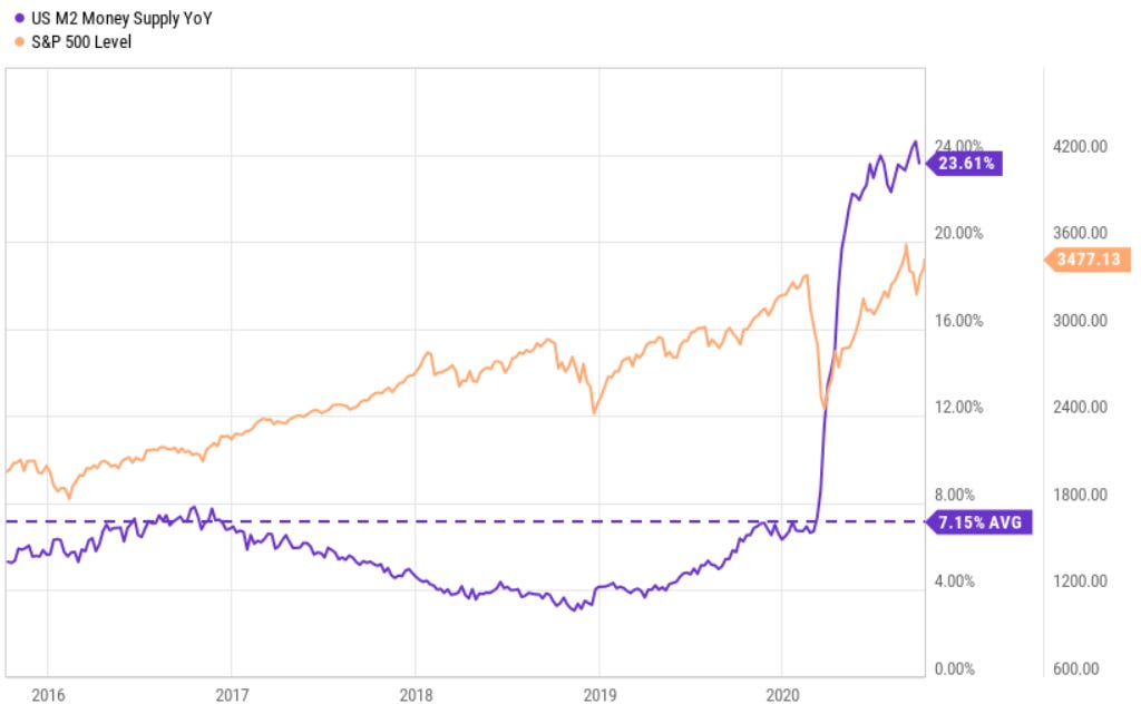 Stimulus efforts at the consumer level are grabbing all the attention right now but the Fed has kept the spigot flowing when it comes to money supply… This has certainly had a stimulating effect on the economy.