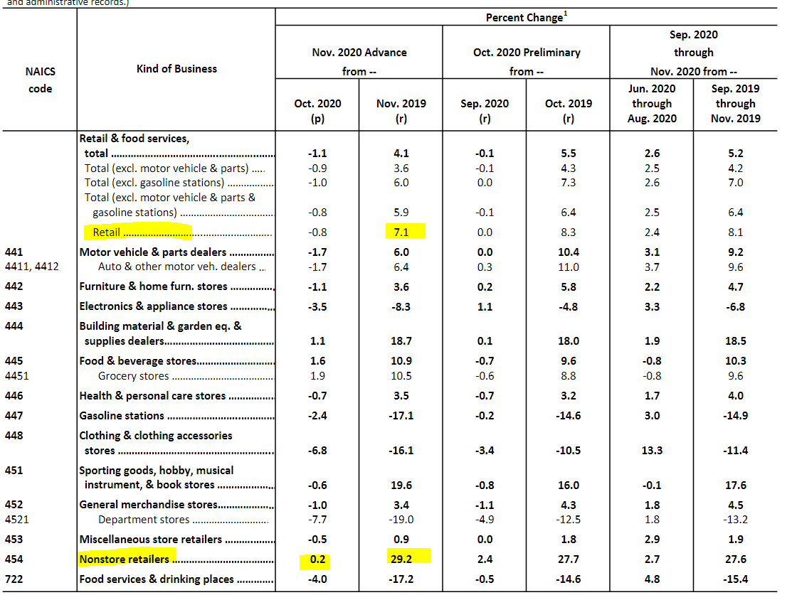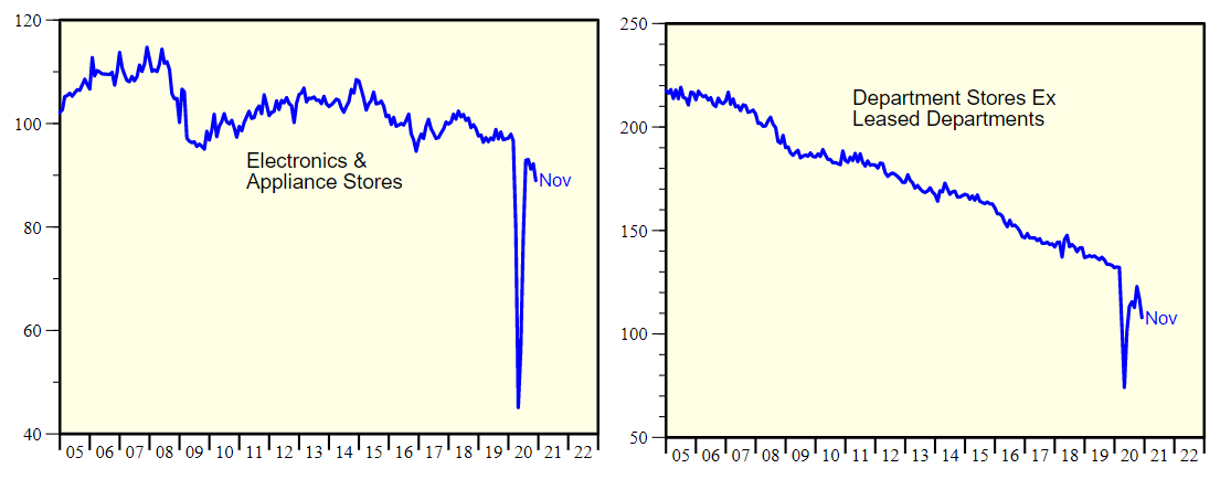 Certain sectors in retail spending are performing better than others. Some are accelerating (building materials) and others are seeing accelerating downward trends like electronics and department stores.