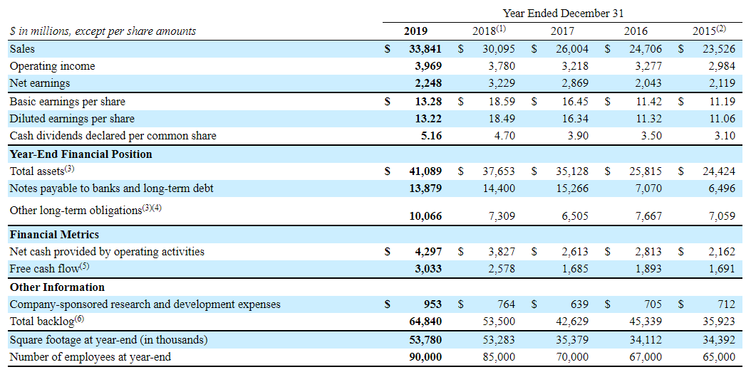 Since 2017, Northrop produced $13.5bn in operating cash. Capex was $4.3bn so $9.2bn in cumulative free cash flow on a $50bn market cap. They spent $7.7bn to acquire Orbital ATK in 2018 which was the only acquisition during the ~3.5 year period. Dividends and buybacks were $6bn. The difference came from net borrowings.