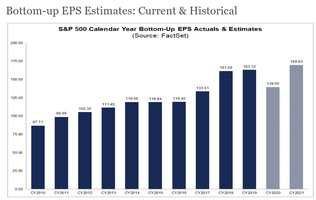 Let’s take a look at earnings estimates for the S&P for the rest of 2020 and the upcoming year…