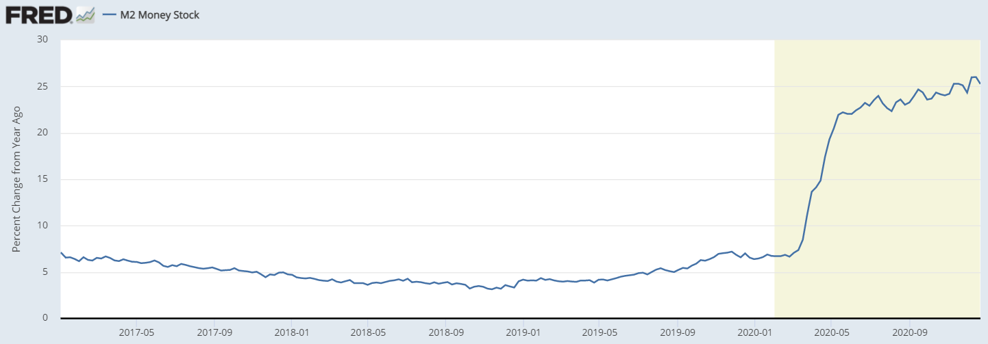 The Fed has not let off the gas with money supply growth north of 25% year-over-year…