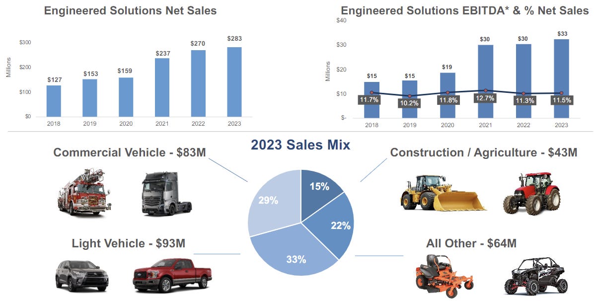 Growing on/off-highway OE segment (engineered solutions) and stable aftermarket business.