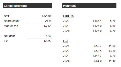 Stock is cheap at 11x FCF (my estimate) and 6.7x EBITDA (2024 guidance)