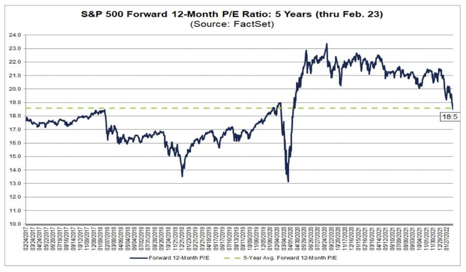 S&P 500 trading at ~18x forward earnings according to FactSet… down from 22x+ over the past year.