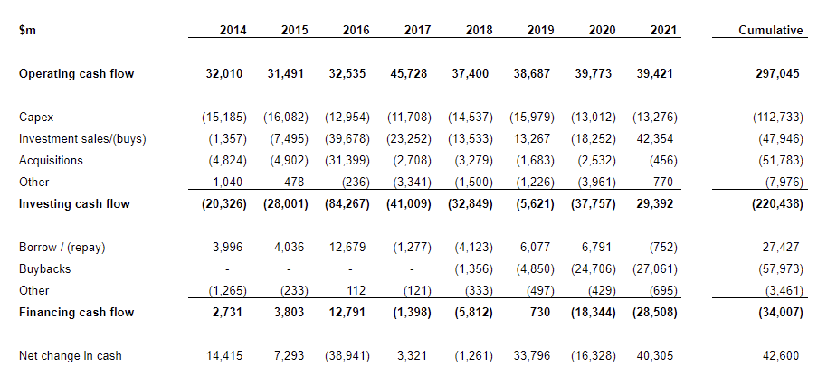 Free cash flow was ~$26bn in 2021 — it looks like Berkshire hasn’t made any improvement in cash flow for several years now