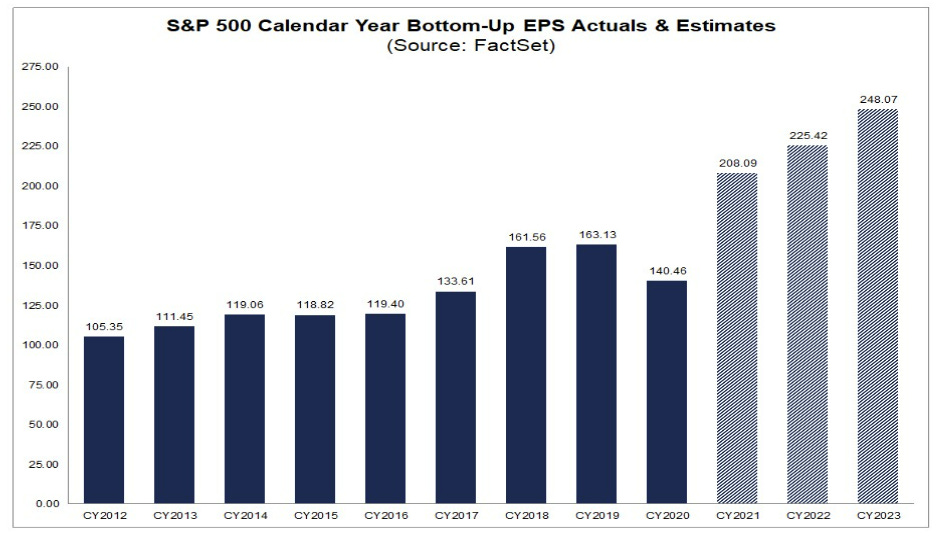 Earnings estimates anticipate 8.2% growth from 2021-2022 which would also imply 11.3% CAGR from 2019. Yardeni has a nearly identical view of S&P 500 operating earnings.