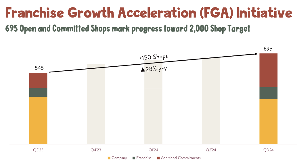 Franchise development is robust and starting to contribute meaningful earnings — franchise count up to 90 (3Q24) from 46 in 2020