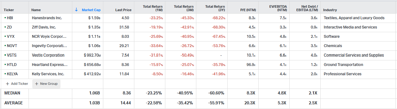 7) Kelly Services — KELYA, $12 — Wrote up Kelly Services in Feb 2025 at $13. The stock isn’t tanking as hard as others on this list (or elsewhere on my watchlist) perhaps because this industry is already so beaten down.