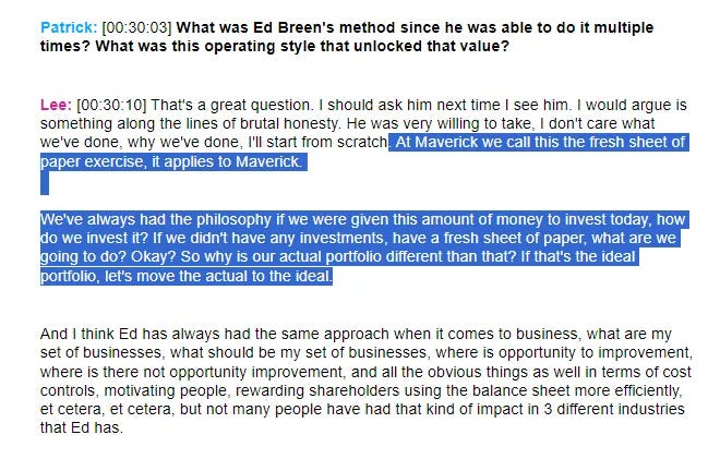 “Fresh sheet of paper” exercise — I don’t work this exercise often enough, but the concept is simple… imagine your portfolio is sitting entirely in cash right now, then (re)construct the portfolio from scratch… then compare how that differs from your current portfolio. Here’s an excerpt from a Lee Ainslie interview on the concept: