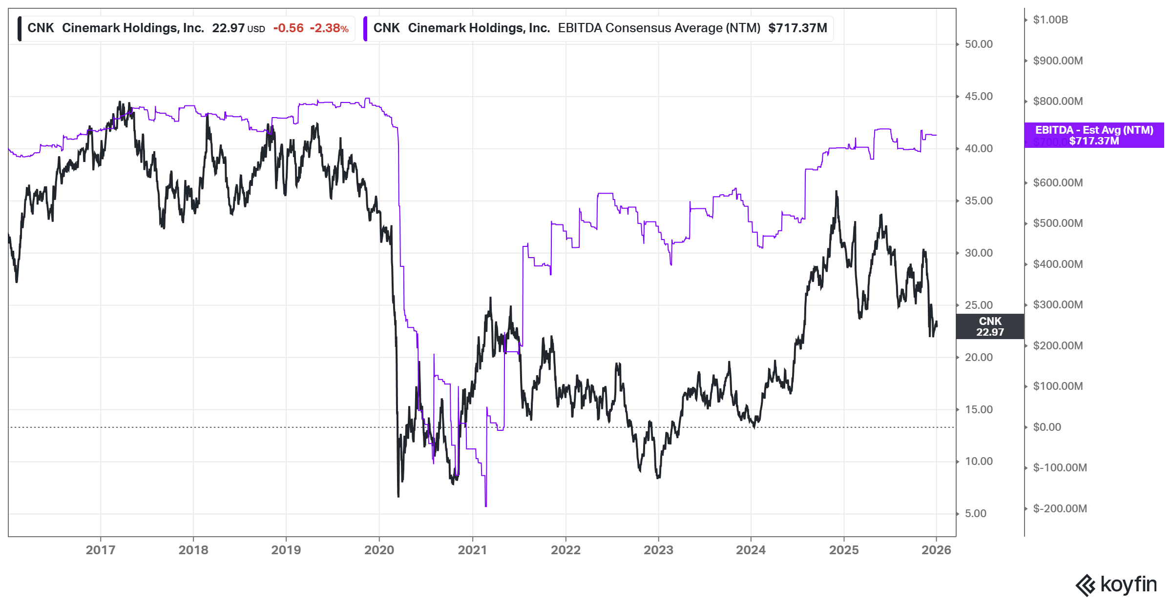 Cinemark EBITDA estimates are steadily climbing as a result: