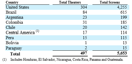 Cinemark is the #3 movie operator behind AMC and Regal with 497 theaters and 5,653 screens in the U.S. and Latin America (of which, 304 theaters & 4,255 screens in the U.S.).