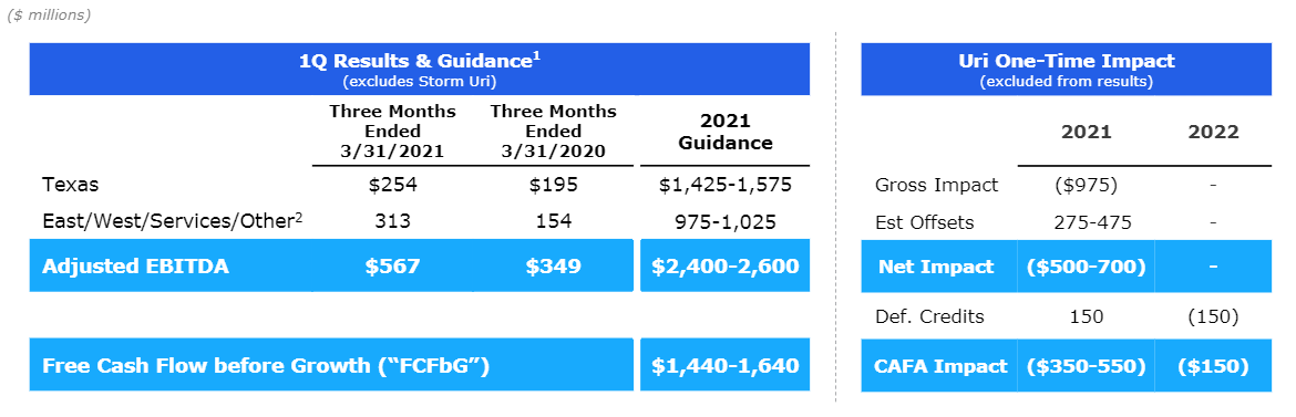 This was a terrible storm that caused many fatalities and exposed problems with the Texas electrical grid. Rival IPP Vista Energy saw $1.6bn in cash losses from the storm, some smaller players went out of business. NRG experienced a $975m hit from Uri and with actions taken, should be able to stem those losses to $500-700m.
