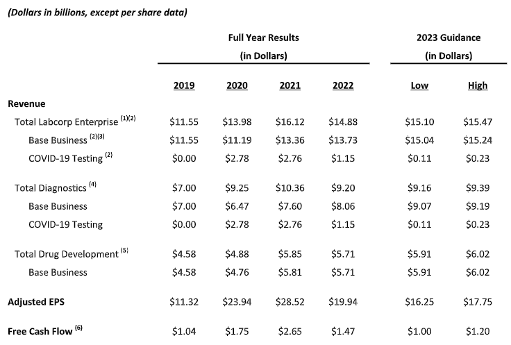 FCF spiked in 2020-2022 from COVID testing and as the business normalizes in 2023, management is expecting $1-1.2bn FCF.