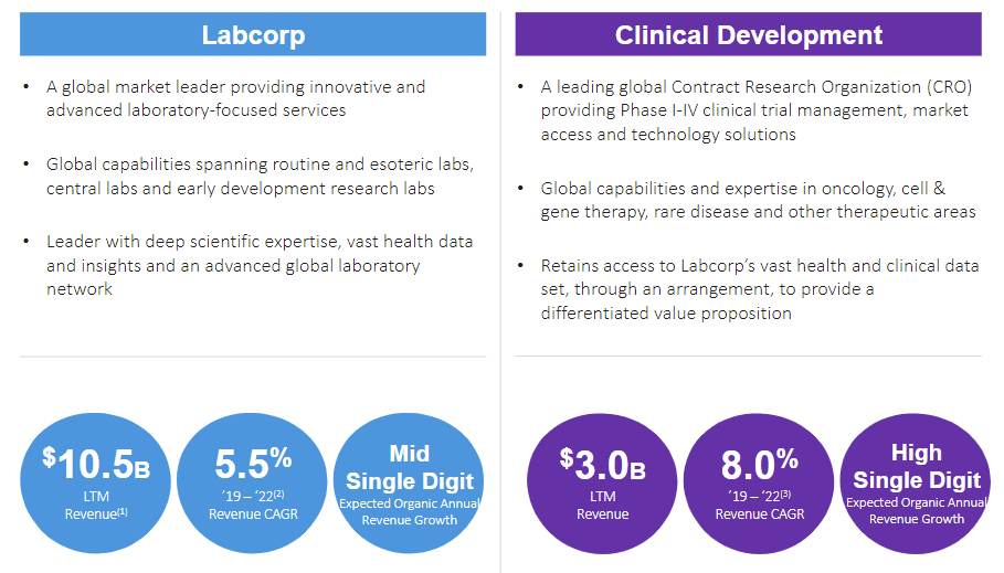Labcorp is a healthcare company focused on diagnostics and drug development.