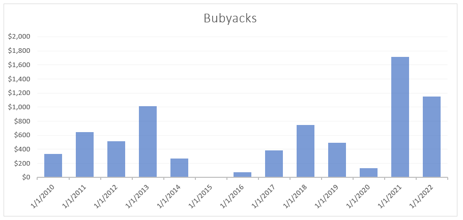 Buybacks — The other major area of capital allocation… Labcorp decided to “give back” most of their supernormal earnings to shareholders from the 2021-2022 years.