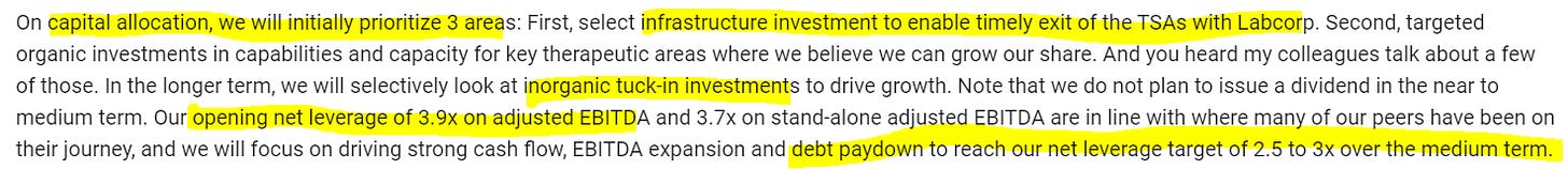 2) Some themes I’m noticing on capital allocation (as a combined LabCorp)…